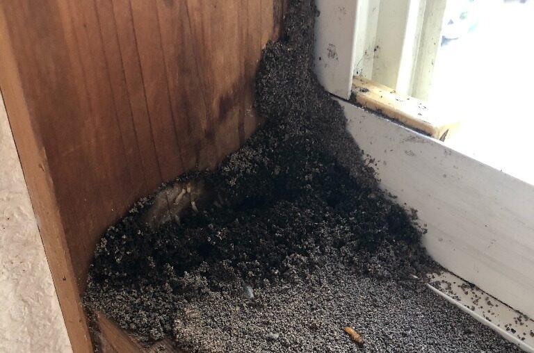 室内の床や窓枠、壁際などに土のようなものや木くず、粉が落ちている場合は、シロアリが木材を食べ進めているサインかもしれません。特に、掃除しても同じ場所に繰り返し落ちている場合は注意が必要です。見えない壁の内部や床下で被害が進行していることも多く、早めの点検が被害拡大を防ぎます。